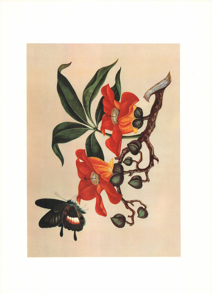 Butterfly and Flowers Chinese 18e Centery - 16 X 22 Inches (Art Print)